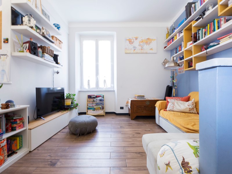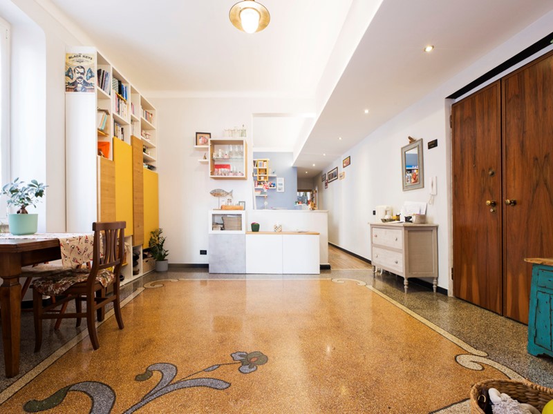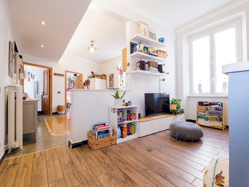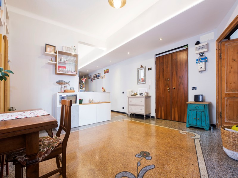 L'appartamento, che si presenta ben ristrutturato e gode di un'elevata luminosità per tutto l'arco della giornata, si compone di un ampio ingresso alla genovese, un soggiorno, una cucina abitabile con l'antico lavandino in marmo tipico ligure, due camere matrimoniali dotate di balcone alla francese ed infine un ampio bagno.