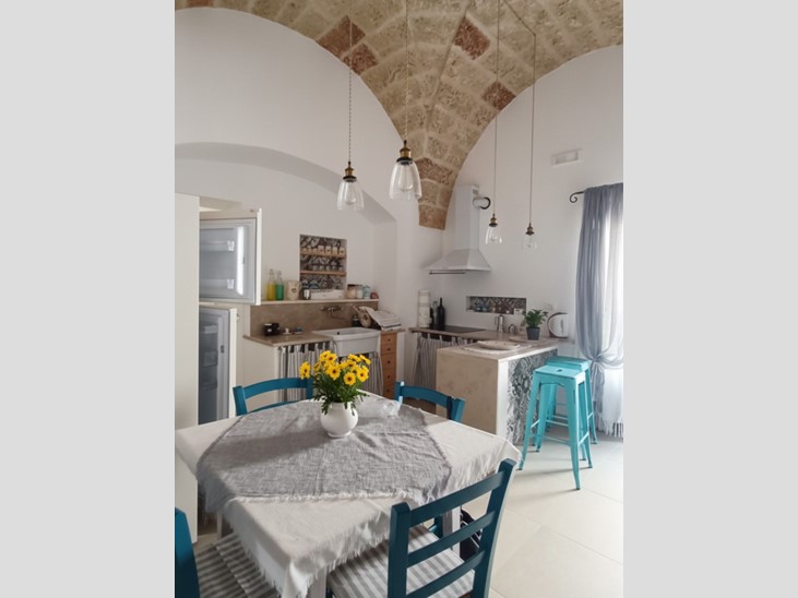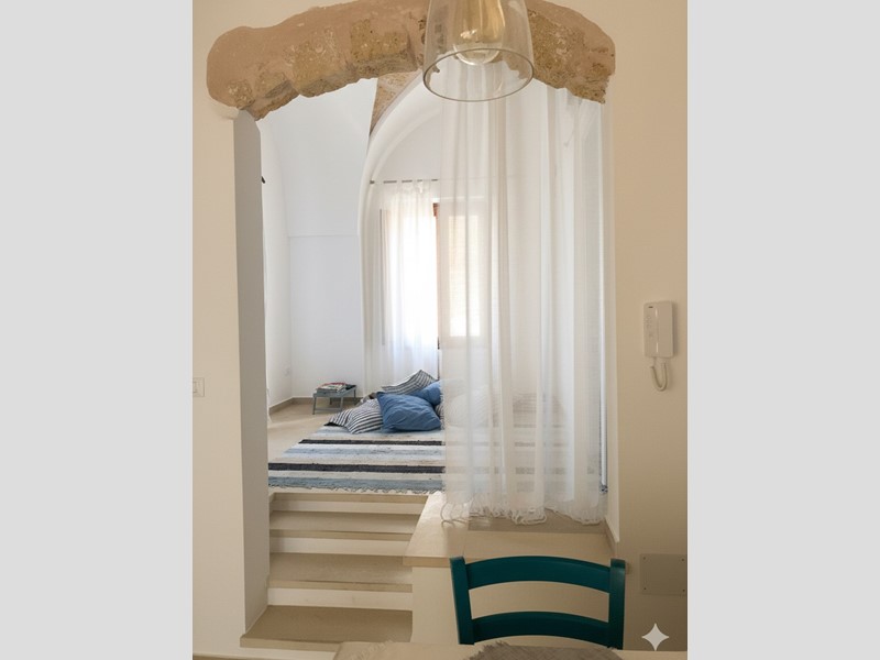 L’abitazione si raggiunge tramite una scalinata che conduce a un pittoresco vicolo, regalando fin da subito l’autentica atmosfera del borgo salentino.