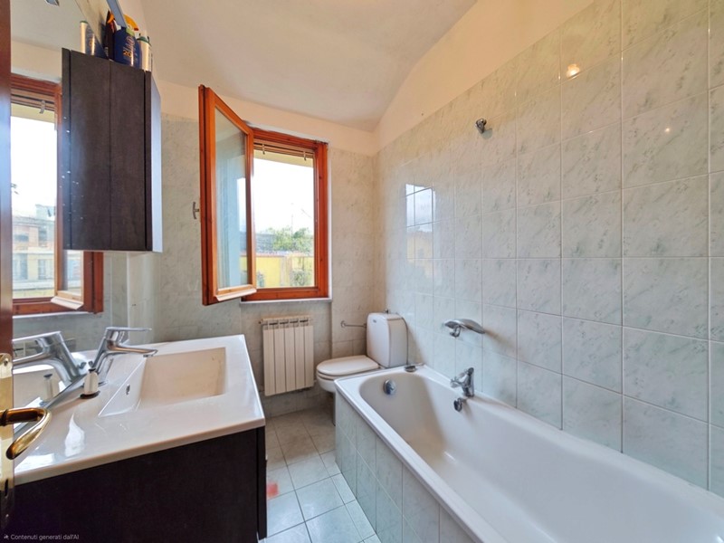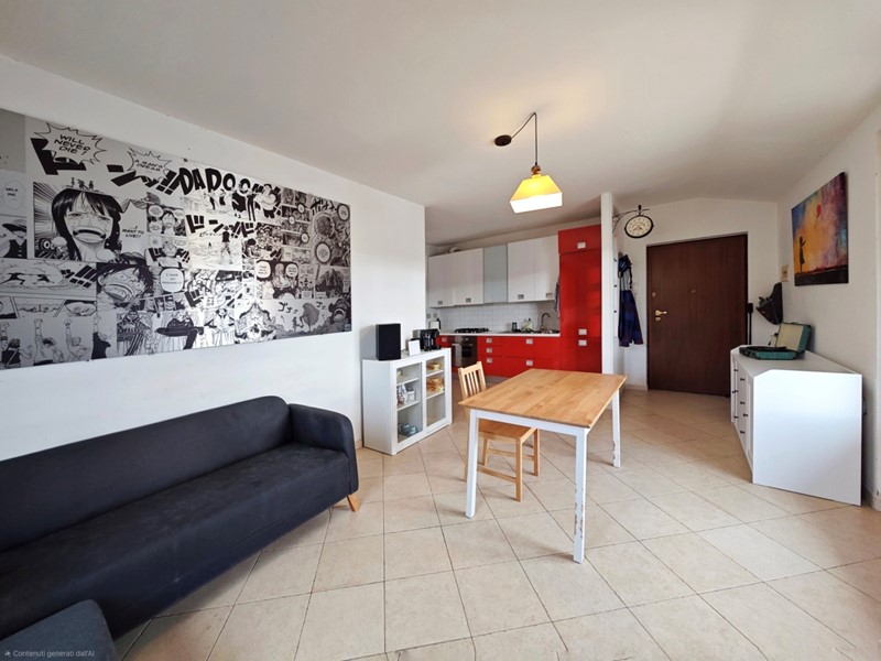 L'immobile si posiziona al secondo ed ultimo piano con ascensore in palazzina realizzata fine anni '80 ed è così composto: disimpegno di ingresso, soggiorno con angolo cottura, terrazzo, disimpegno, una camera matrimoniale, una camera singola, un bagno finestrato con vasca, secondo bagno di servizio con doccia e soffitta uso ripostiglio collegata tramite botola con scala. Completano la proprietà il posto auto coperto e una cantina di modeste dimensioni dotata di corrente elettrica e acqua. Ideale come prima abitazione.
