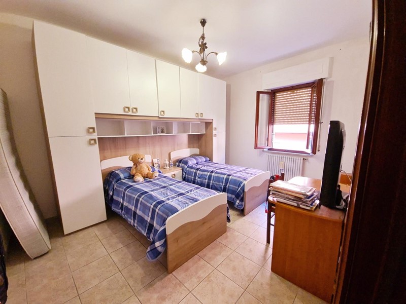 Fornacette , NOSTRA ESCLUSIVA, appartamento in buono stato di manutenzione, posto al primo piano e disposto su due livelli e precisamente piano primo e piano terra, avente accesso da ingresso condominiale, l' immobile si compone al piano primo (da dove abbiamo l' unico accesso) da ingresso, due camere matrimoniali, cameretta, bagno e scala per accedere al piano terra dove troviamo una zona soggiorno/pranzo con angolo cottura e un altro bagno, dalla zona giorno accediamo ad un resede esclusivo piastrellato di circa mq.60 dove troviamo un locale lavanderia ed un locale pluriuso che può essere adibito a locale per pranzi e cene o come locale pluriuso - Rif. 551 NO POSTO AUTO