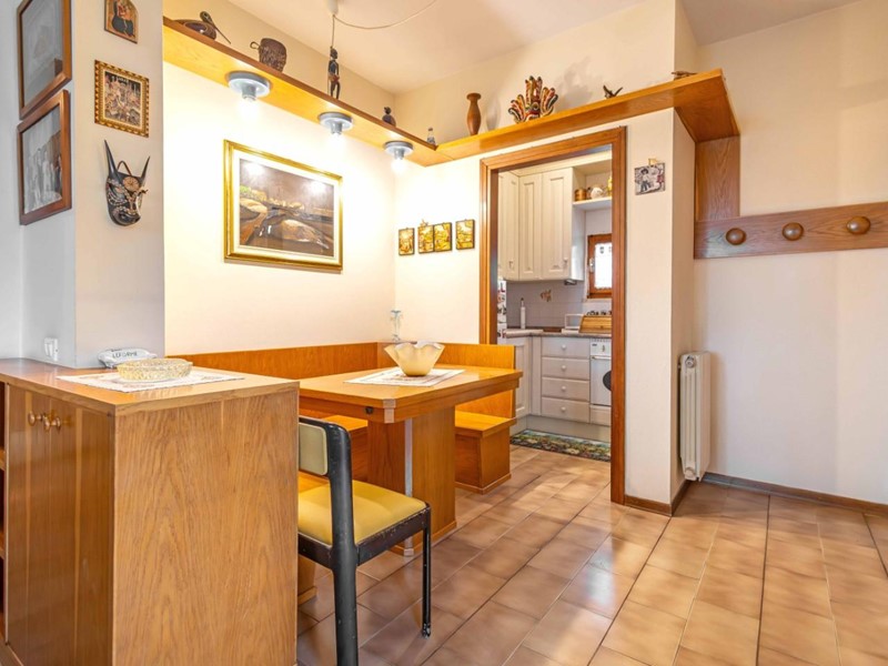 Si accede direttamente nella zona giorno dove troviamo un ampio soggiorno con caminetto, zona pranzo con accesso ad una terrazza abitabile dove possibile pranzare nel periodo estivo e cucinotto separato. Nel reparto notte troviamo una camera matrimoniale con ulteriore balcone, una cameretta, ed un bagno ( rifatto ) con doccia e finestra oltre ad una comoda soffitta accessibile esclusivamente dall'appartamento. Al piano terreno ampio garage.