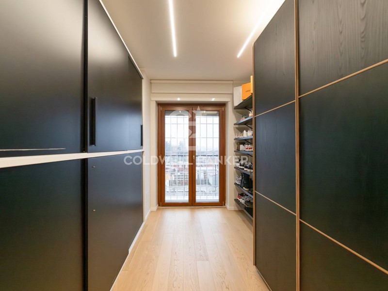 Lappartamento si apre su un elegante ingresso dotato di pratico spogliatoio/guardaroba. La zona giorno, ampia e luminosa, comprende un salone con cucina a vista. Un disimpegno conduce alla zona notte, composta da una camera padronale con cabina armadio e bagno privato, ulteriori due camere matrimoniali e un secondo bagno. Tutti gli ambienti, ad eccezione dei servizi, hanno accesso diretto al terrazzo, perfetto per pranzi e cene allaperto e facilmente attrezzabile come area living esterna.