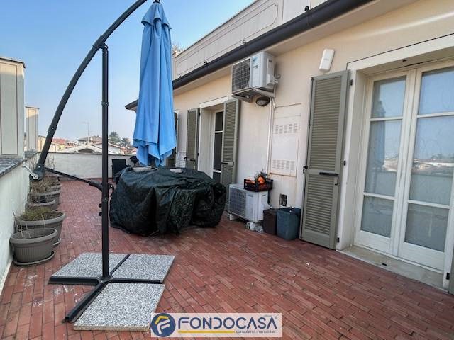 Tipo attico vendesi in Ospitaletto in centro paese, comodo a tutti i servizi, luminoso e panoramico sui 3 lati, appartamento con terrazza vivibile, composto da; ingresso, soggiorno con cucina abitabile a vista e uscita su terrazza, disimpegno notte con 2 camere da letto, bagno padronale e secondo bagno/lavanderia.