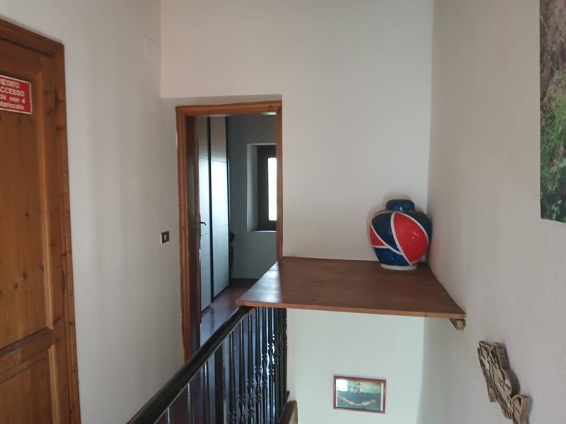 Al piano terra si trova un' accogliente cucina in muratura che ci introduce allabitazione; salendo al primo piano abbiamo un ampio soggiorno con camino e stufa a pellet che si apre verso il giardino posteriore di circa 70 mq e verso un grazioso spazio verde anteriore. Da qui, una scala in pietra conduce al terreno di proprietà di circa 5.000 mq, che circonda labitazione offrendo privacy e una splendida vista sulla vallata.