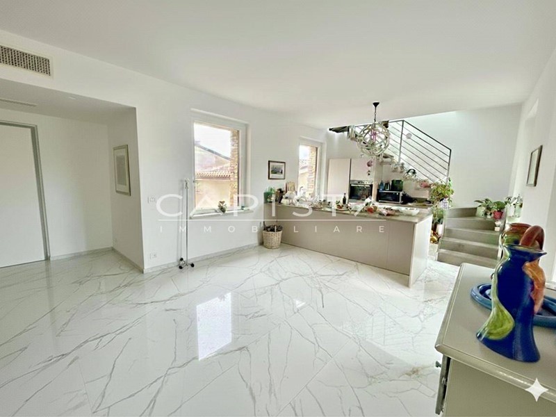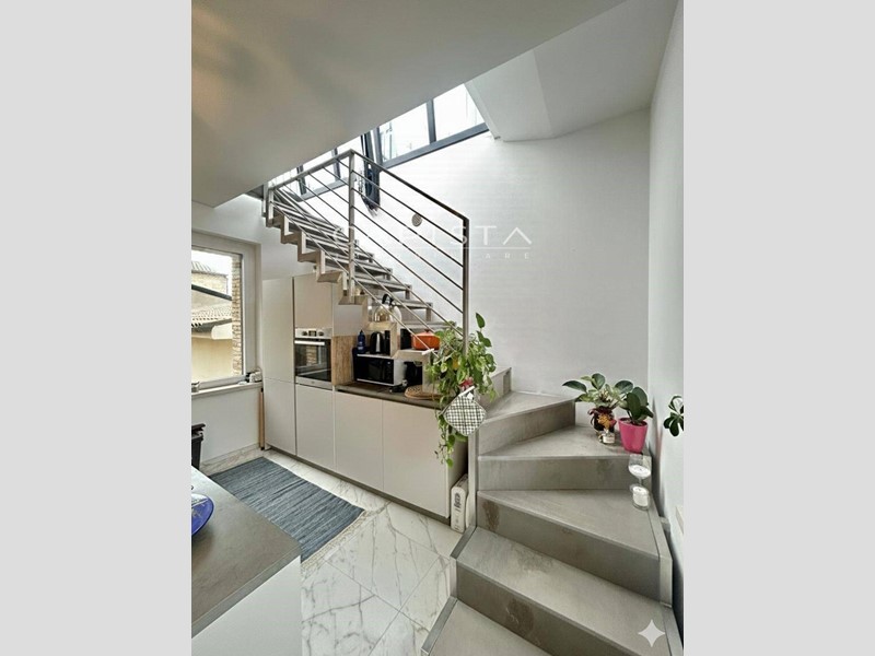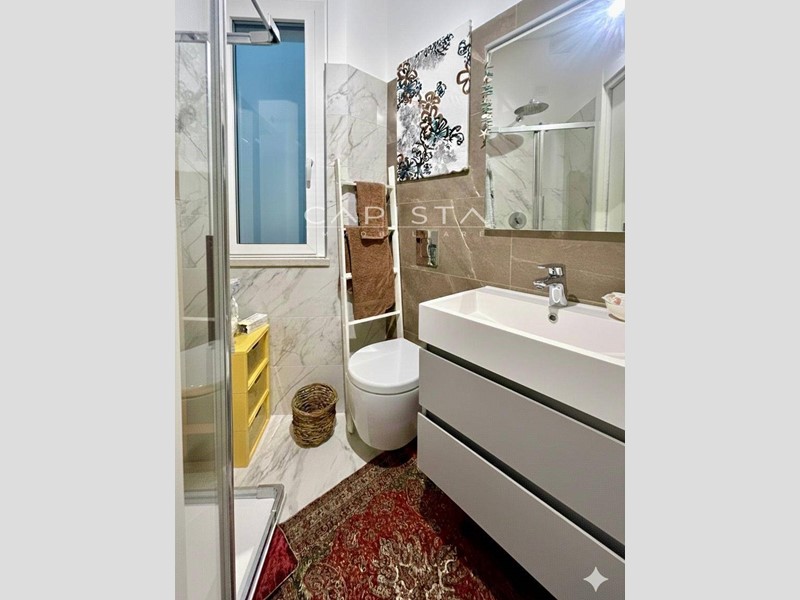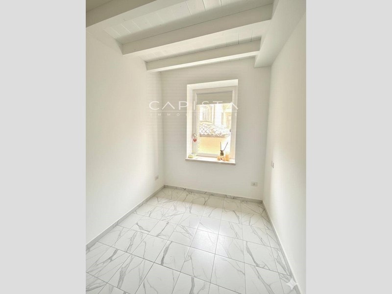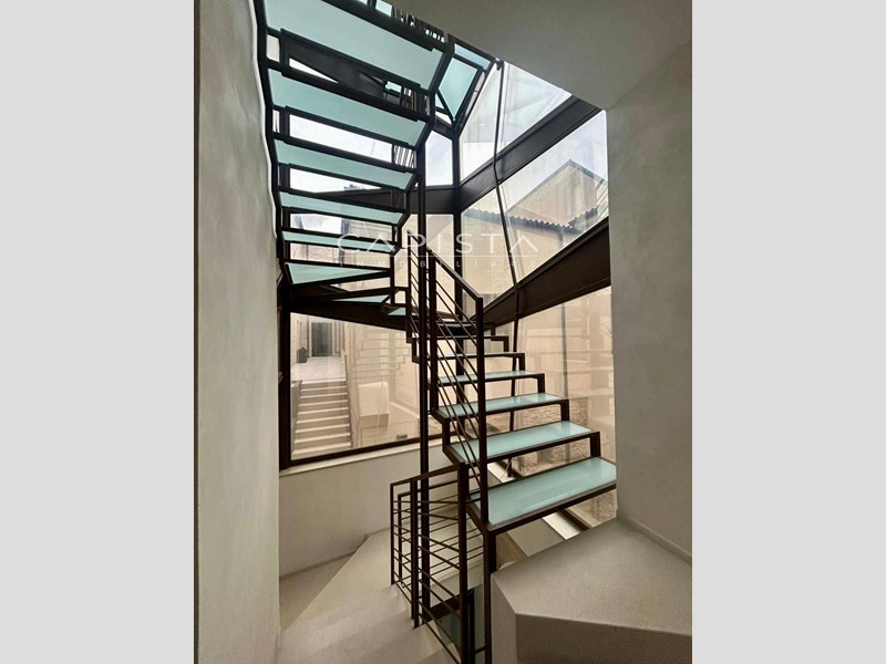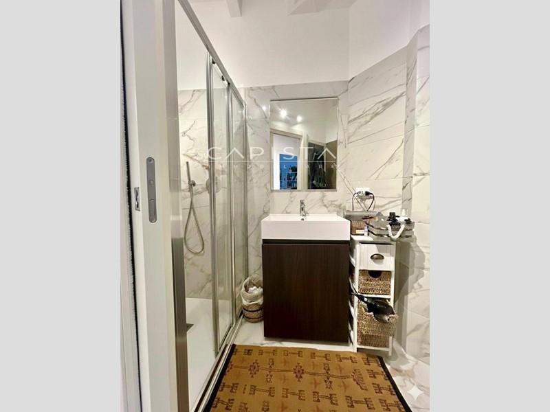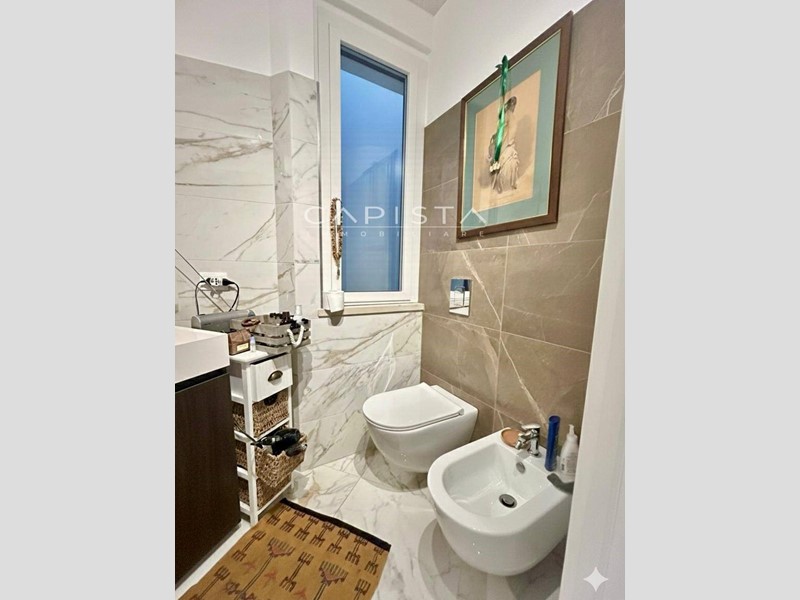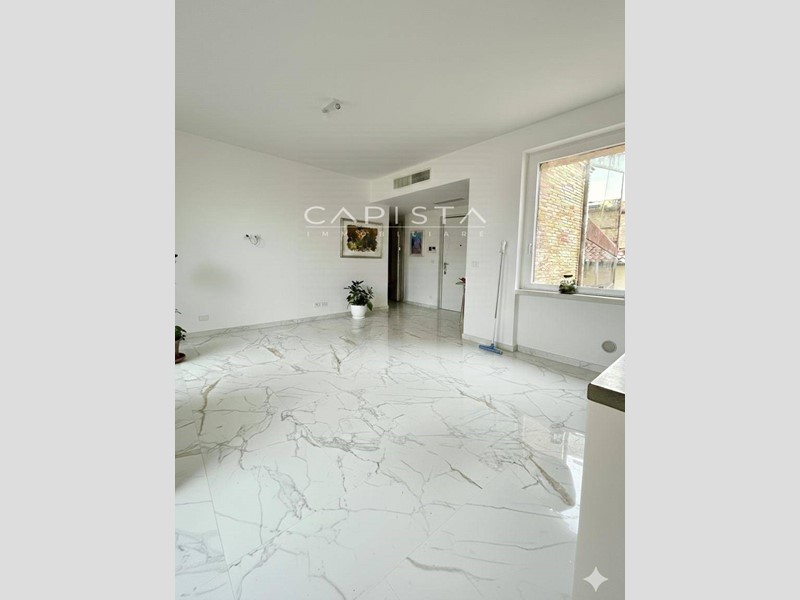 - Ampia zona giorno con cucina a vista, illuminata da cinque vetrate (due su balconcini alla romana);