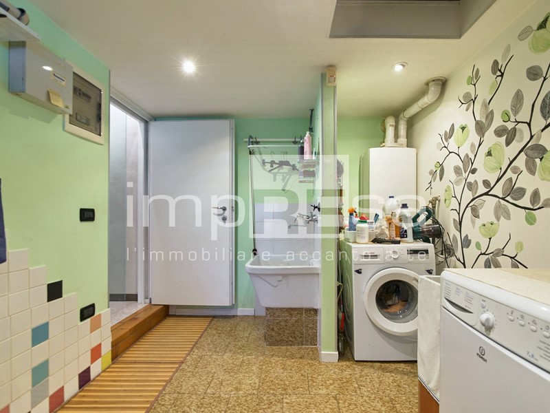 Dalla zona giorno si esce sul portico che si può chiudere/aprire con delle vetrate che permettono la condivisione sul giardino di 100 mq circa dove poter mangiare e godersi le giornate di sole.