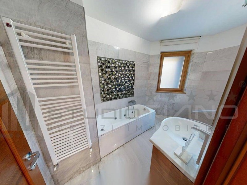 Finiture di pregio: parquet, porte Garofoli, infissi legno/vetrocamera, riscaldamento a pavimento, climatizzazione canalizzata, impianto di allarme, videocitofono, presa TV in ogni stanza. Tripla esposizione, ambienti luminosi e confortevoli.