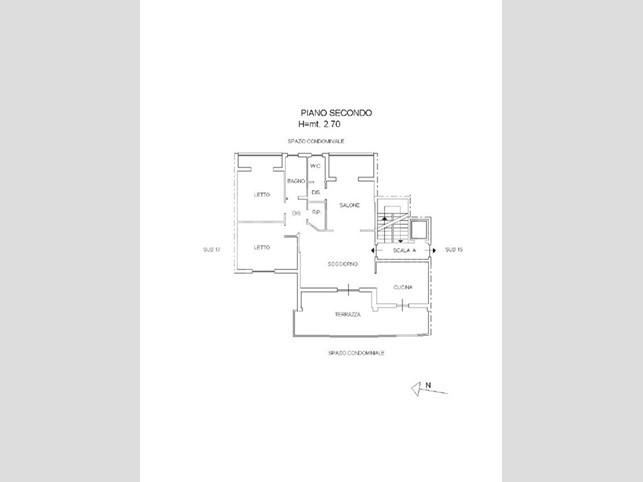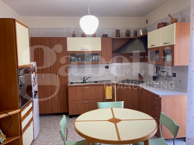 Ampia zona giorno costituita da doppio soggiorno e cucina abitabile, entrambi con accesso su comodo ed esteso terrazzo. Zona notte con camera da letto matrimoniale e cameretta. Doppi serivizi. Ripostiglio. Completa la proprietà un box auto di ben 24 mq.