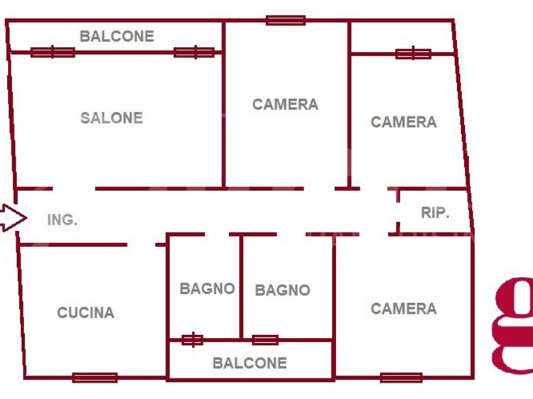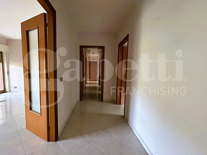 Internamente la composizione è comoda e funzionale, con un ampio ingresso ed un corridoio che disimpegna gli spazi a destra e a sinistra. La cucina è abitabile e piuttosto luminosa, il salone è doppio e con uscita su un comodo balcone, le camere da letto sono tre, sono presenti i doppi servizi finestrati ed un pratico ripostiglio. Le rifiniture interne sono quelle originali anni '90 ed è presente il riscaldamento autonomo.