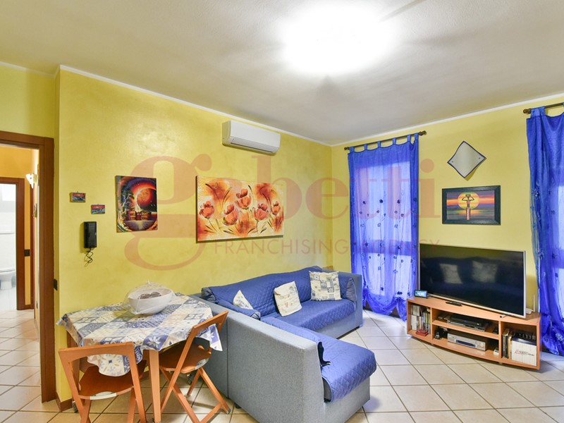 L'appartamento è composto da ingresso su soggiorno con cucina a vista, disimpegno, camera matrimoniale, cameretta ed un bagno completo di box doccia.