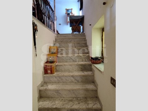 L'appartamento si sviluppa su tre livelli: ingresso con un piccolo bagno al piano terra, cucina e soggiorno/pranzo al primo piano. La zona notte, con tre camere da letto e un bagno, è posizionata al piano secondo, da dove si gode una bellissima vista del centro abitato.