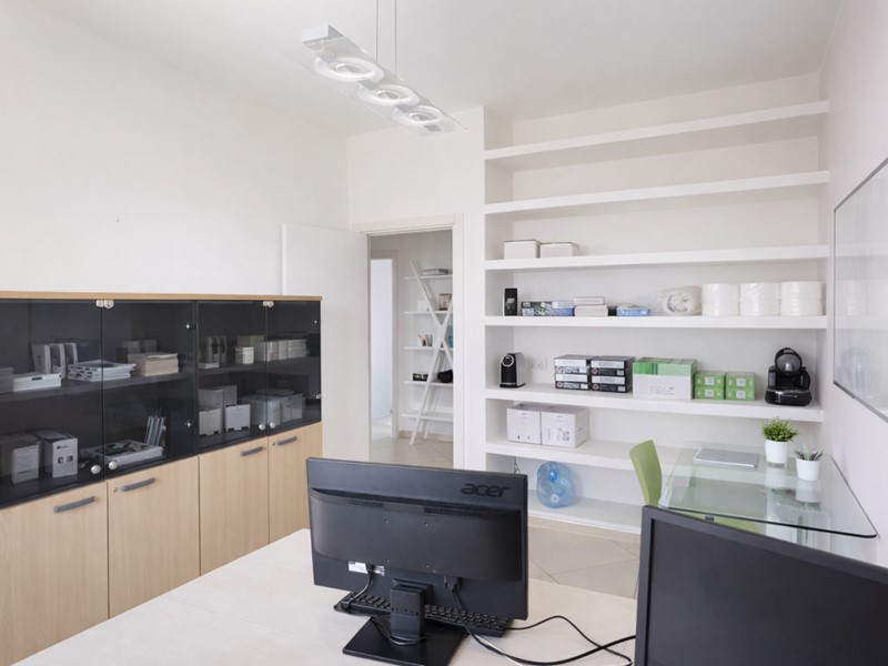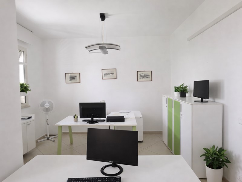 L'appartamento attualmente adibito ad uso ufficio è così composto: ingresso su ampio salone, cucina, n. 3 camere, bagno e ripostiglio.