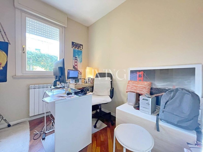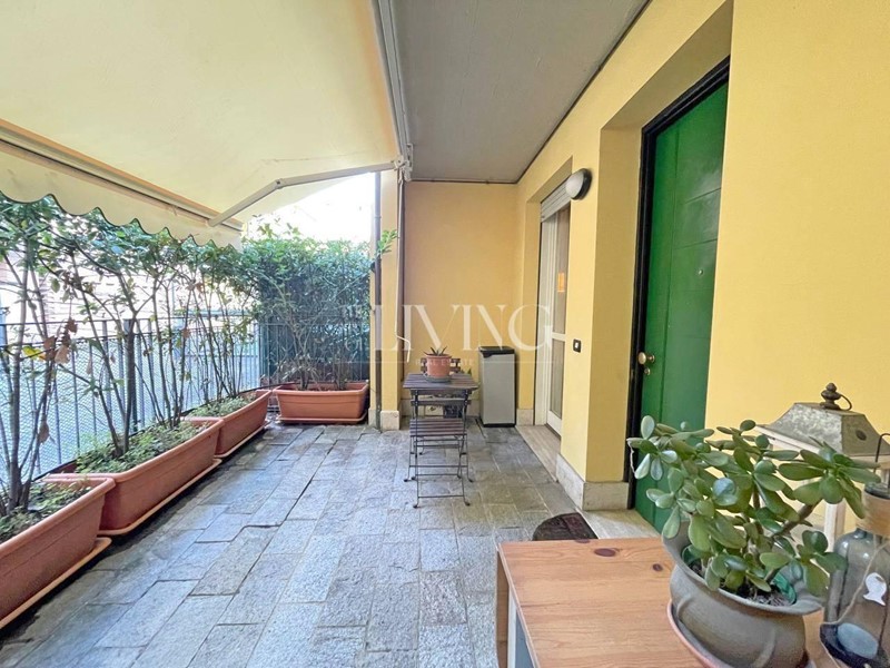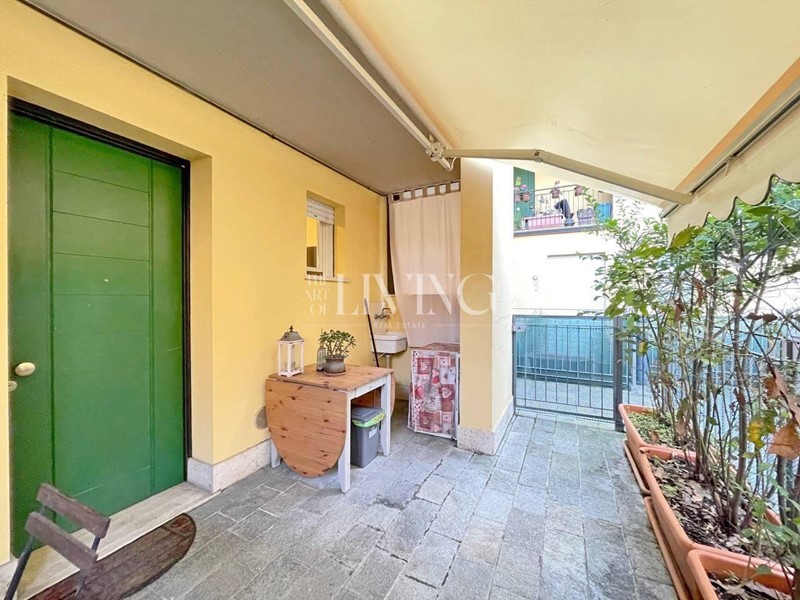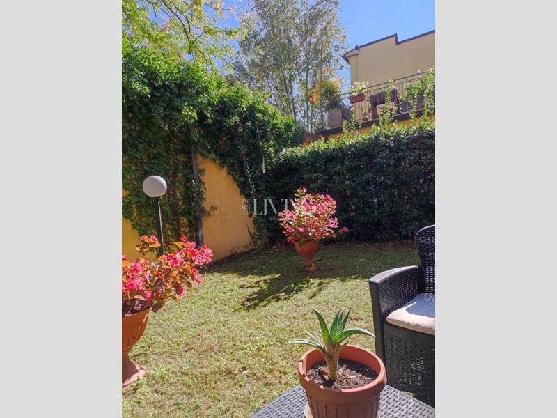 Da una porta-finestra si accede a un piccolo giardino privato, uno spazio verde riservato dove rilassarsi.