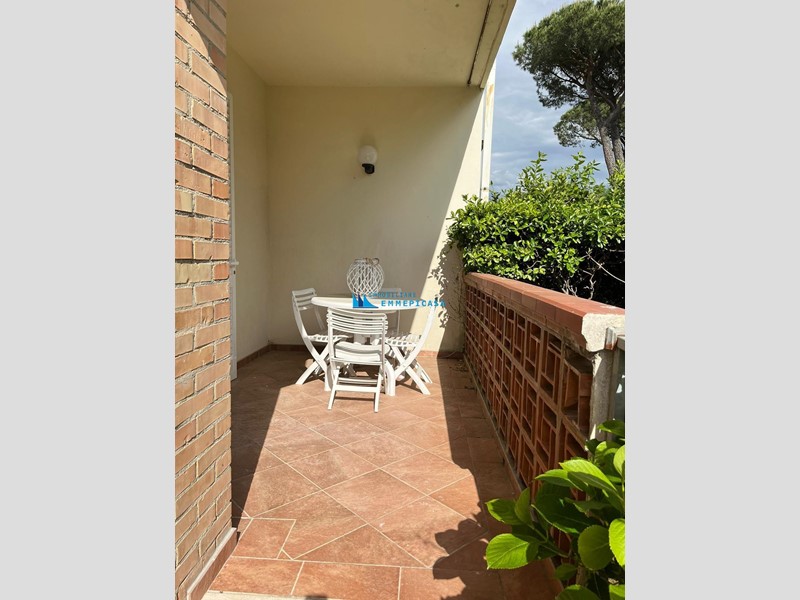 Cinquale. Si affitta per stagione estiva appartamento posto al piano terra di condominio a soli 400 metri dal mare e dal centro. In ottime condizioni si compone di ingresso, soggiorno con angolo cottura, disimpegno, camera matrimoniale, bagno con doccia e seconda camera doppia. Ampia veranda per pranzare all'aperto, giardino esclusivo ed un posto auto all'interno del parcheggio condominiale. Aria condizionata, TV, lavatrice. Richiesta per Giugno € 2.300 - Luglio € 4.000 - Agosto € 4.000 (Non disponibile). Rif. AT227