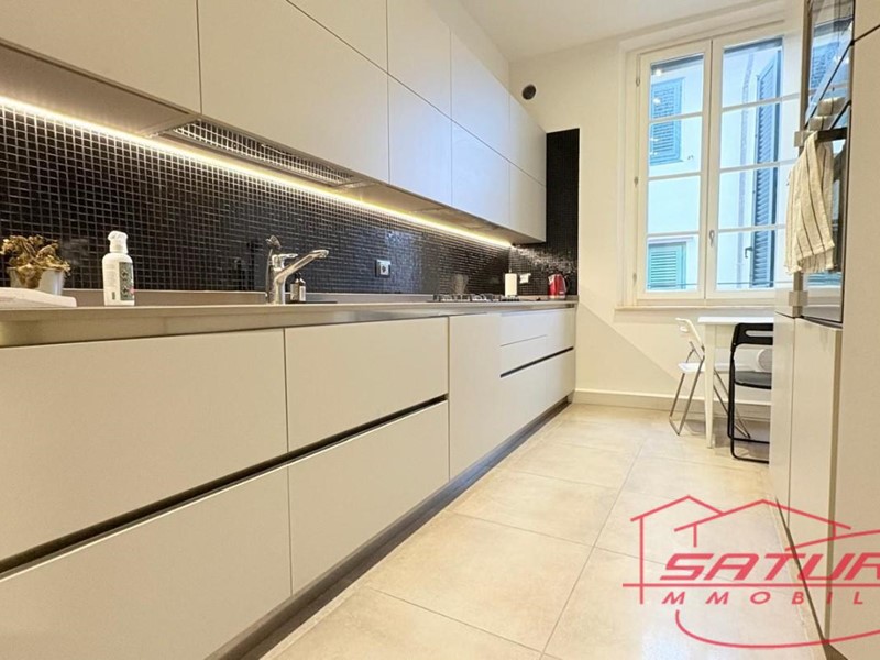 Lucca, centro storico, posto su via centralissima ampio e luminoso appartamento di 100 mq posto al piano quarto (78 scalini con scala comoda) completamente ristrutturato composto da ingresso, soggiorno di circa 40 mq, cucina abitabile, disimpegno notte, due ampie camere, due bagni e un ripostiglio. Ottima ristrutturazione con pavimenti in parquet, infissi con doppi vetri, impianto elettrico e idraulico nuovo e predisposizione aria condizionata. Ideale anche come forma di investimento da mettere a reddito per affitti. Nessun lavoro da fare. Anche la loggia e il vano scale si presentano in ottime condizioni di manutenzione. Subito disponibile. Rif.IA6481
