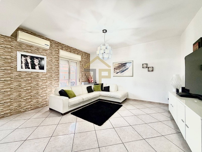 Limmobile si trova in un contesto comodo e ben organizzato, con doppio ingresso condominiale, uno da Largo Giuliana e laltro da Via Giafar. Lingresso apre su un salone doppio, ideale per accogliere ospiti o per creare una zona living ampia e confortevole. La cucina abitabile in muratura è separata e ben strutturata, con accesso a una veranda utilizzata come lavanderia, pratica e funzionale.