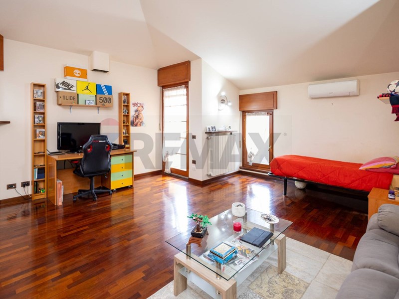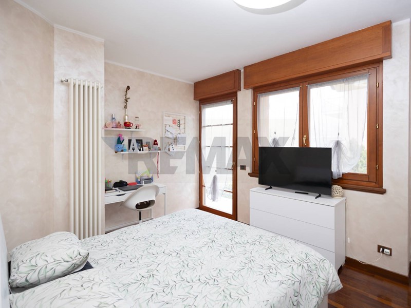L'appartamento è dotato di infissi in legno con doppi vetri e zanzariere, garantendo un'ottima isolazione termica e acustica.