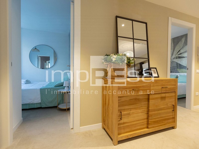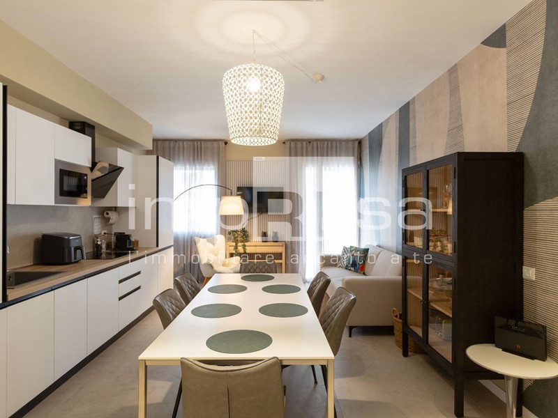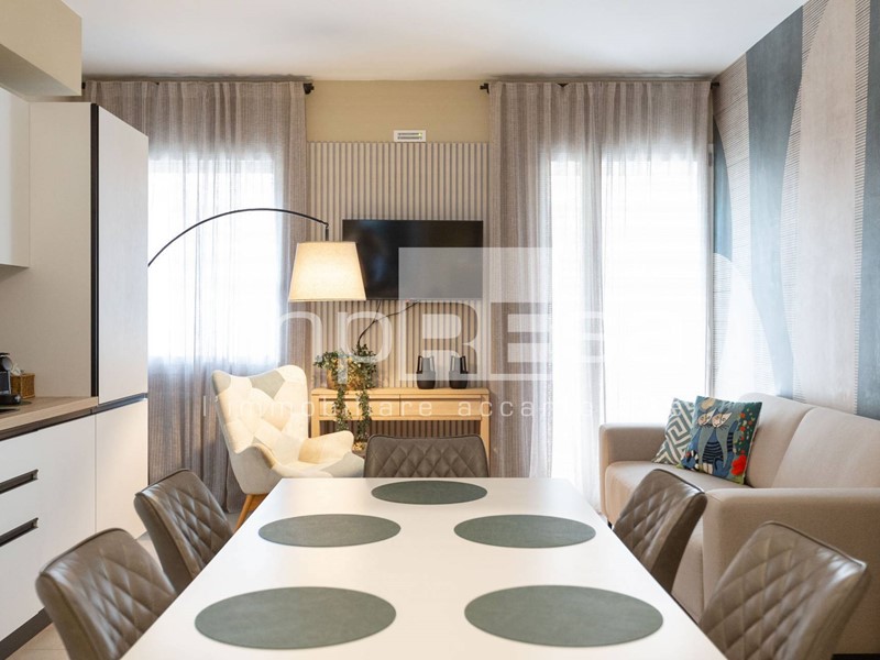 L'ampia zona giorno si compone da cucina attrezzata di ogni comfort, piano cottura ad induzione, forno, lavatrice, asciugatrice.