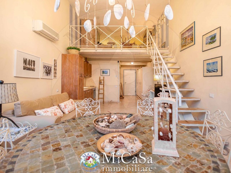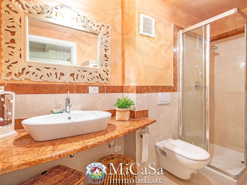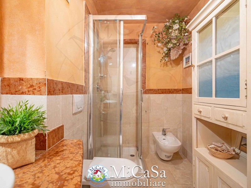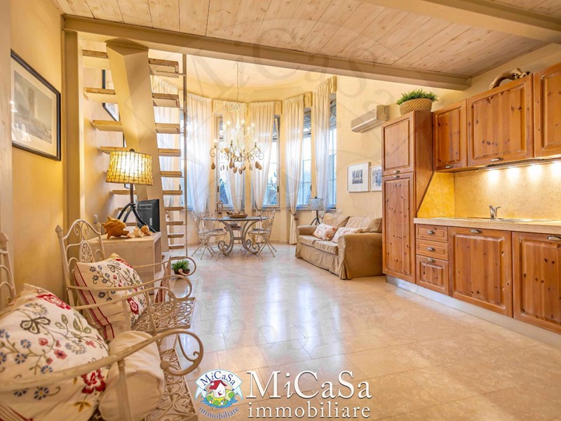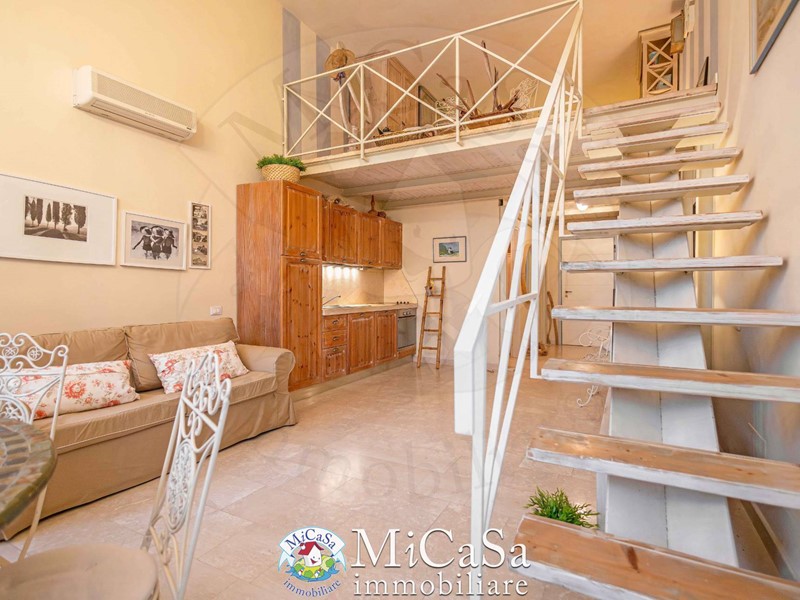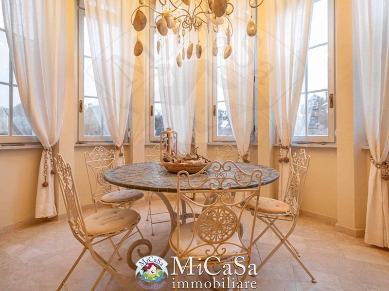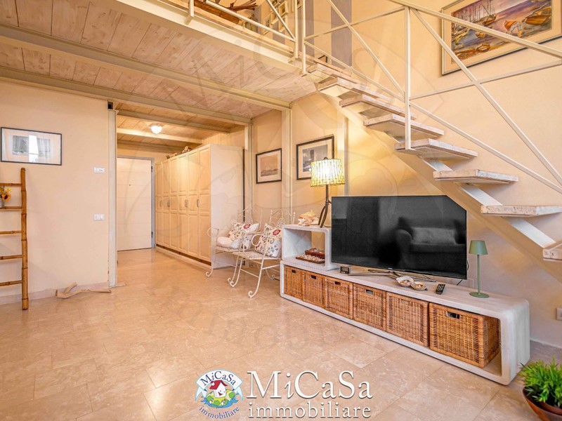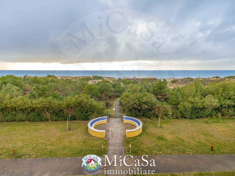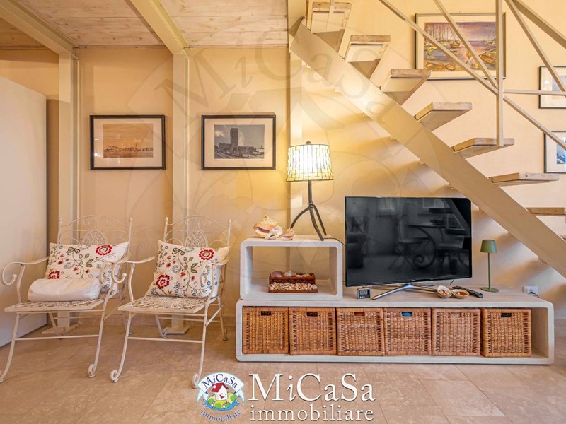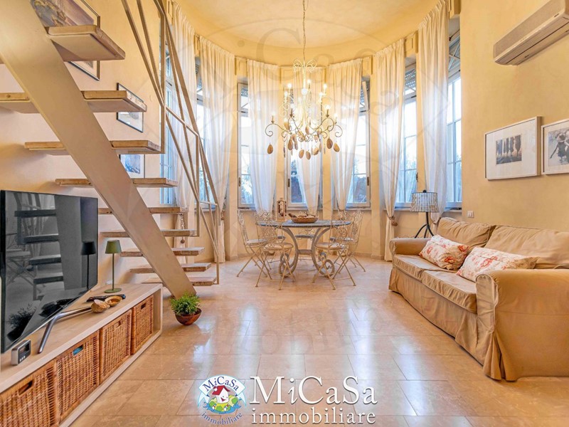 Proponiamo appartamento di grande fascino in ex colonia storica composto da living a doppio volume e bow-window semicircolare affacciato su duna mediterranea e mare, ampio bagno con box doccia arricchito da pavimenti e rivestimenti in marmo Rosso Verona e beige . Gli spazi risultano ampi e raffinati pur in una superficie contenuta.