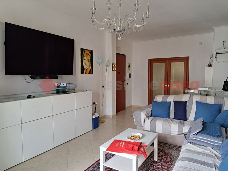L'appartamento è composto da : Ingresso con soggiorno a vista con balcone esterno , comoda cucina abitabile e annessa zona cottura con balcone interno verandato e vano lavanderia, bagno con doccia , camera da letto, cameretta e ripostiglio . Possibilità di parcheggiare due auto all'interno del recinto condominiale con cancello elettrico.