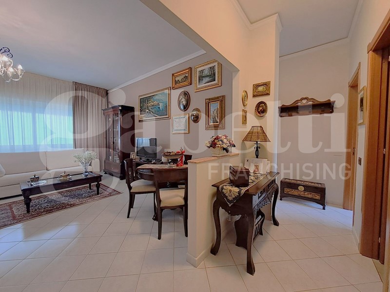 Tra le dotazioni di questo appartamento troviamo un comodissimo doppio ingresso che permette di accedere direttamente in cucina, il riscaldamento autonomo con caldaia a metano, le porte d'ingresso blindate, gli infissi esterni in alluminio con doppio vetro, climatizzatori, posto auto assegnato, grande terrazzo, ed ampia veranda.