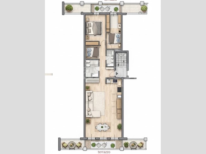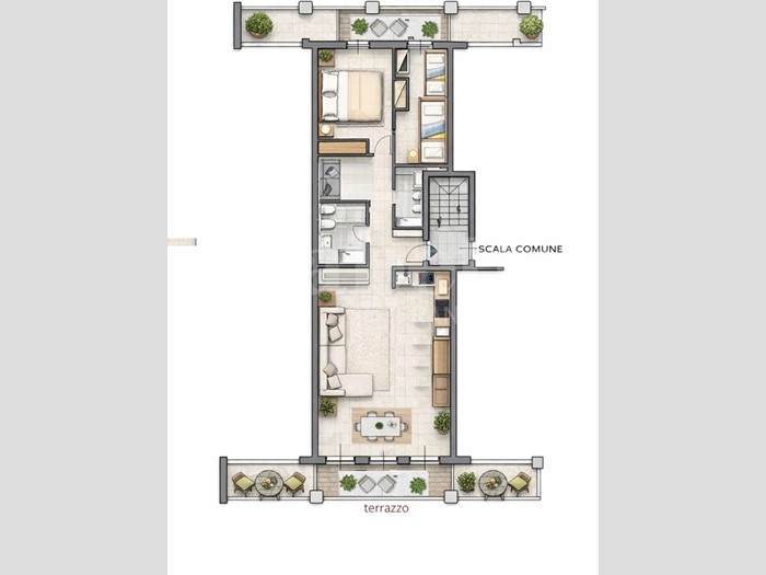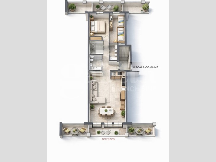 - Terrazzo vista mare (est), direttamente collegato alla zona living con cucina a vista, perfetto per colazioni con il sole