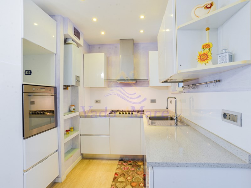 L’ingresso si apre su un ampio salone accogliente e luminoso, impreziosito da una cucina a vista spaziosa e funzionale. Dalla zona giorno si accede a una grande veranda utilizzabile come zona lavanderia.