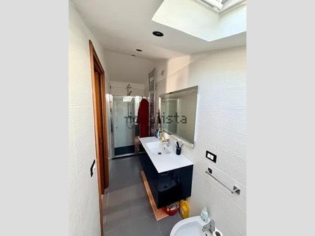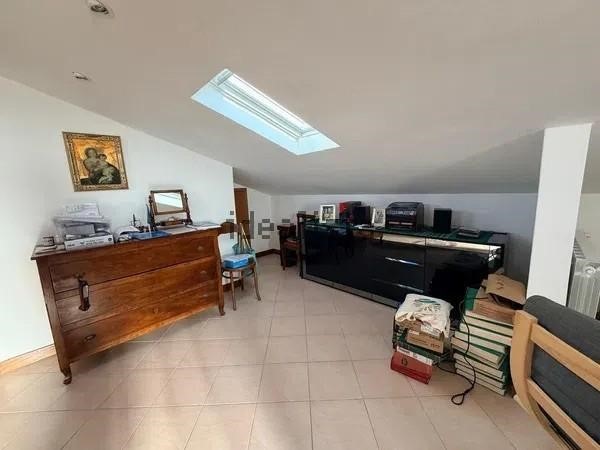L'attico è composto da Soggiorno ampio con cucina a vista di 45mq con accesso al balcone chiuso a veranda, regolarmente condonato dove persiste la zona lavanderia, e con un ampia terrazza di 25 mq con chiusura motorizzata e ripostiglio; disimpegno della zona notte, con guardaroba, due camere matrimoniali di cui una con stanza armadi finestrata, entrambe con affaccio sul balcone fronte strada di 12Mq. Bagno finestrato con ampia doccia. L'immobile è dotato di una controsoffittatura con faretti. Tramite una scala in legno accediamo ad ampia e luminosa mansarda di circa 60 mt, con altezze regolari dove troviamo un soggiorno e uno studio, una camera matrimoniale e un bagno con doccia. Infine un ampio e comodo sottotetto accoglie il locale tecnico dei vari impianti, la centralina elettronica e quella delle telecamere di sorveglianza e un sottotetto ad uso ripostiglio. Posto bici in rastrelliera esterna. Spese condominiali di 100 euro mensili.