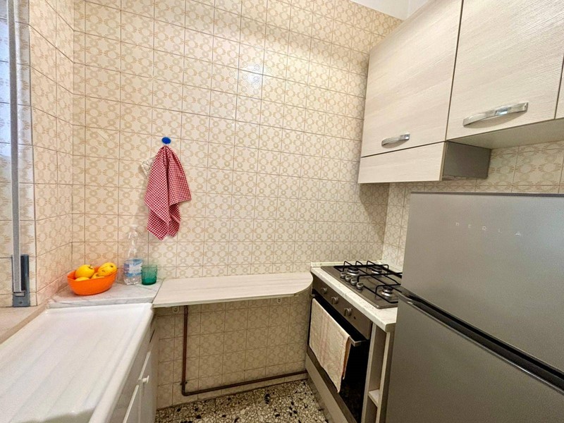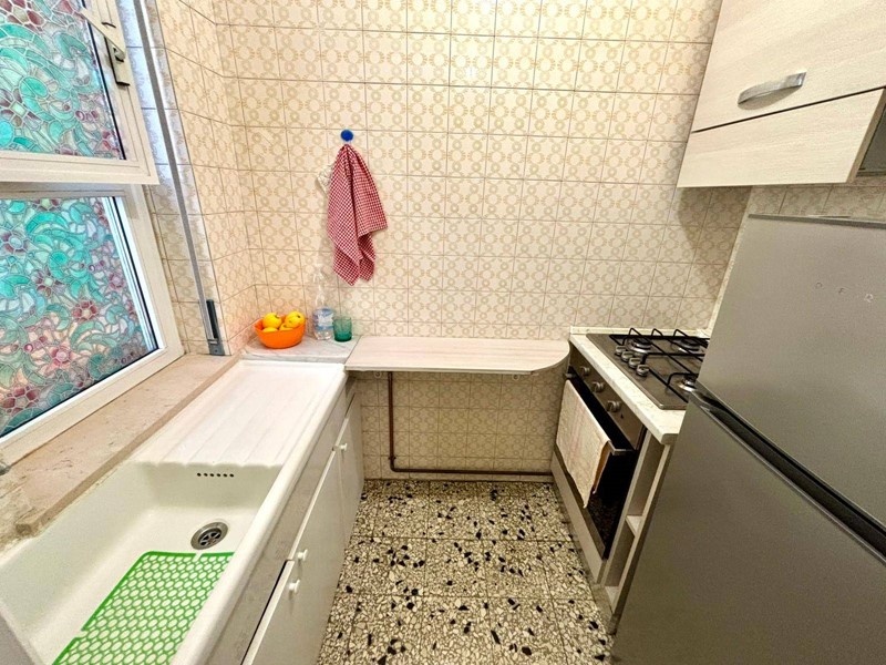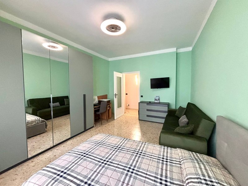 Ingresso su disimpegno, zona pranzo e cucinino funzionale, camera da letto matrimoniale molto grande dove è stato realizzato anche un piccolo soggiorno con divano letto matrimoniale, bagno finestrato con vasca-doccia, ampio armadio a muro, balcone grande e ripostiglio.