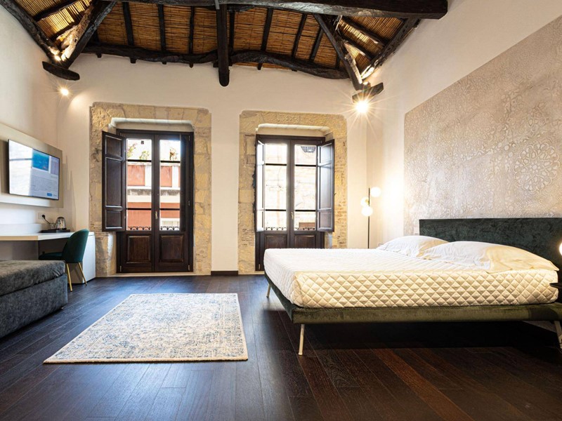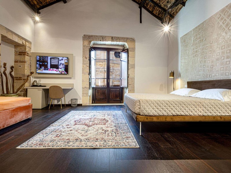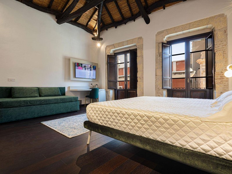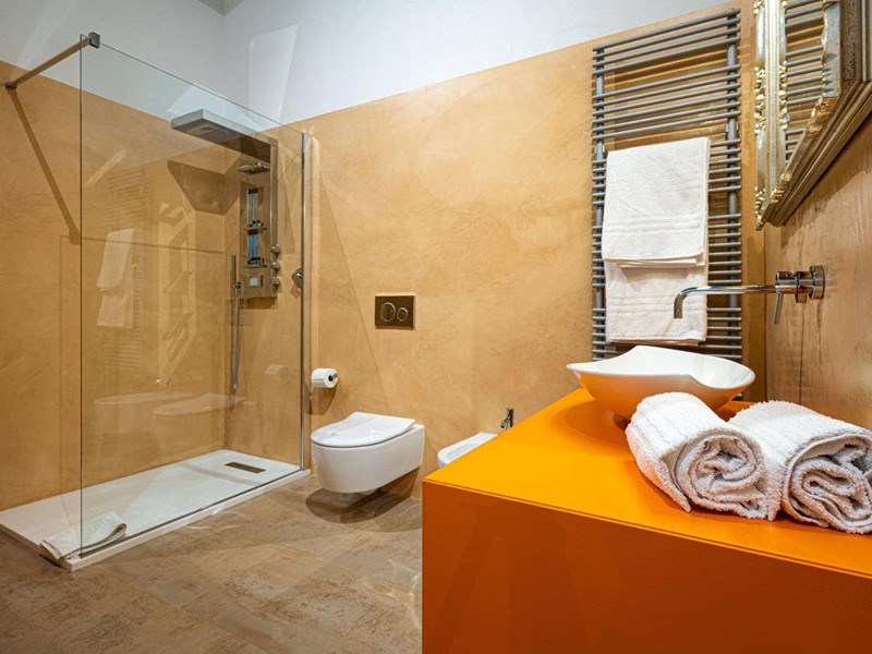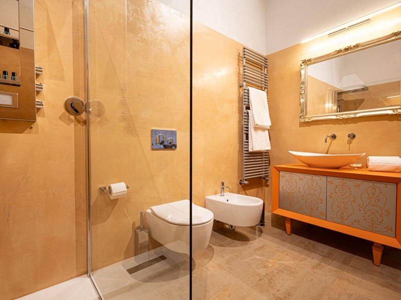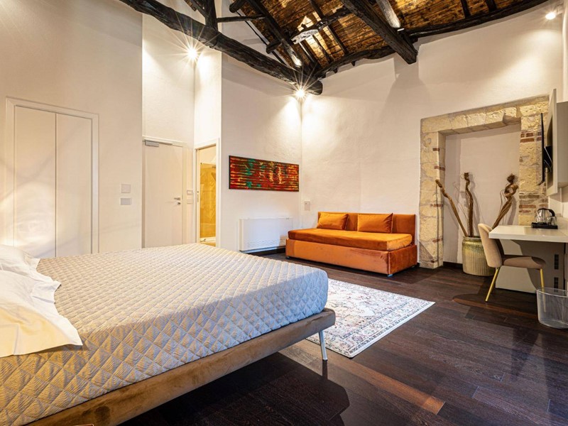Il cuore della casa è il luminoso soggiorno con zona cottura, che si apre direttamente su una straordinaria terrazza panoramica di 120 mq, con vista frontale sulla Cattedrale e scorci suggestivi sui tetti e sul fascino senza tempo del centro storico; uno spazio unico per vivere momenti di assoluta esclusività.