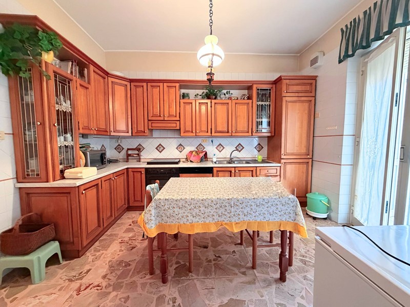 L'ampio ingresso ci porta nel grande salone doppio, il corridoio disimpegna la zona giorno composta da soggiorno e cucina unico ambiente che esce sul balcone dove troviamo un ripostiglio. Nella zona notte, abbiamo le tre camere di cui due matrimoniali, i due bagni e un altro ripostiglio.