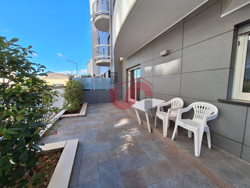 L'immobile è situato al piano rialzato, con una superficie di 86 mq circa ed è composto da ingresso in ampia e luminosa zona living, cucinotto nascosto da porta scorrevole, camera matrimoniale e servizio, oltre a una bellissima terrazza a livello in parta adibita a giardino e annessa loggia.