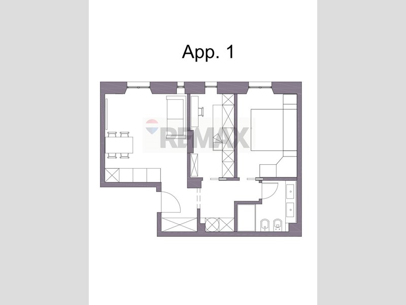 L'appartamento è composto da ingresso su ampio soggiorno con cucina a vista, camera matrimoniale con letto contenitore, seconda camera singola e bagno cieco con box doccia e doppio lavabo. Completa la proprietà ampio solaio di pertinenza.