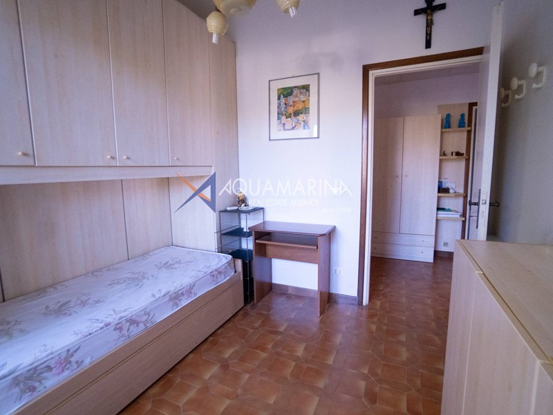 L'appartamento, caratterizzato da un'ottima distribuzione degli spazi, si apre su un ingresso funzionale ideale per armadiature su misura dal quale si sviluppano gli altri ambienti: un luminoso soggiorno con cucinino separato, con accesso diretto a una terrazza vivibile con vista mare, due camere da letto che godono ciascuna di un proprio balcone privato, mentre il bagno finestrato garantisce comfort e luce naturale.