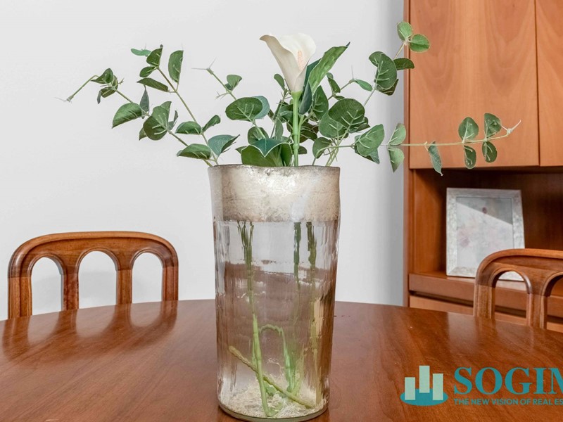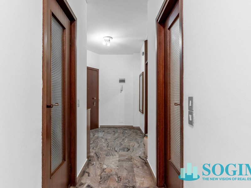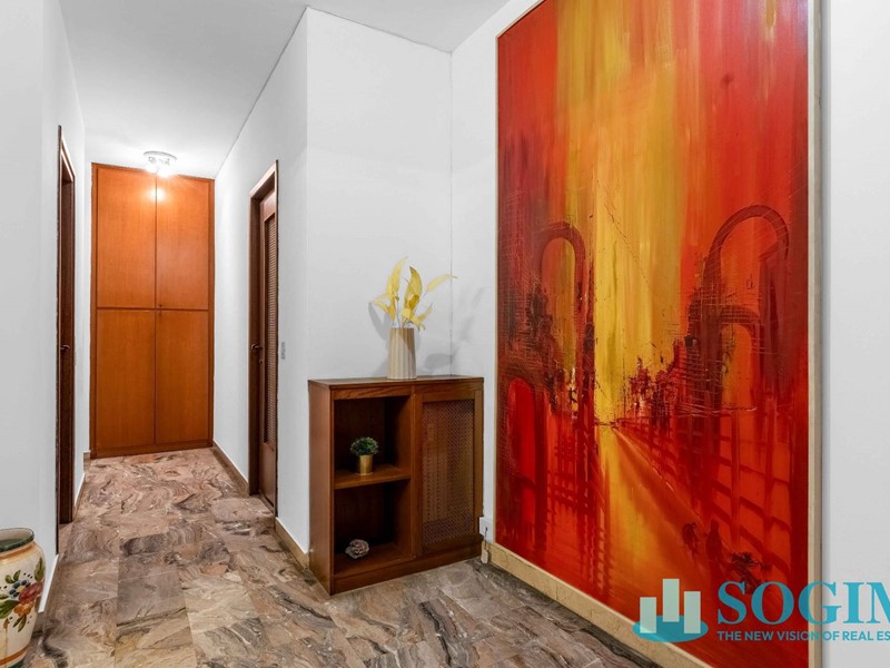 La pavimentazione nelle camere è in parquet a quadrotti mentre, negli altri locali sono state posate lastre di marmo ad eccezione della cucina dove è presente gres porcellanato effetto legno; gli infissi sono in pvc con doppio vetro. Limpianto di riscaldamento è centralizzato.