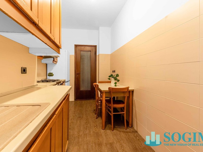 L'abitazione è composta da: ingresso, ampio soggiorno con balcone, cucina abitabile con accesso al balcone, due comode camere di cui una matrimoniale, un funzionale ripostiglio e un bagno.