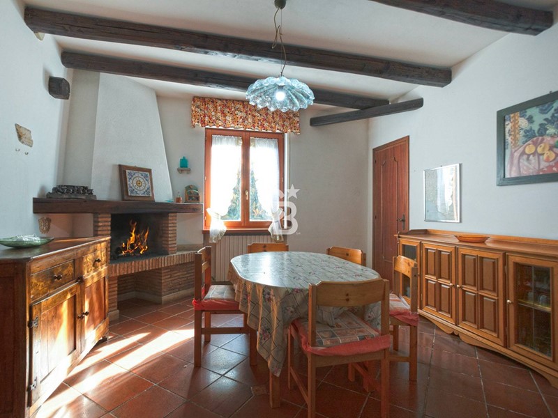 La cucina abitabile con camino è il cuore caldo della casa, perfetta per pranzi in famiglia e serate conviviali.