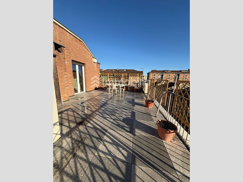 ha il piacere di proporre in vendita un attico unico nel suo genere, situato nel cuore più riservato e ricercato di Santa Rita. Un vero gioiello di 150 mq che si distingue per un elemento raro e prezioso: un terrazzo angolare di 90 mq, avvolgente e soleggiato, che circonda labitazione offrendo uno spazio esterno ampio, vivibile e riservato, ideale per cene allaperto, momenti di relax, area lounge o per chi ama il verde in città. Il terrazzo regala una vista aperta e panoramica, con scorci spettacolari sulla Mole Antonelliana e sulla cornice delle montagne, creando un'estensione naturale della casa e unatmosfera impagabile in ogni stagione. Gli interni, di circa 150 mq, sono stati pensati per garantire comfort e funzionalità. Lingresso si apre su un elegante corridoio che collega in modo fluido tutti gli ambienti. Il salone, ampio e ben illuminato dall' apertura sul terrazzo, accoglie con unatmosfera calda e versatile, perfetta per la vita quotidiana e per ricevere. La cucina abitabile, recentemente arredata con gusto moderno, affaccia anchessa sullesterno e offre spazi pratici e conviviali.