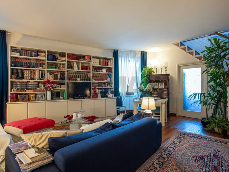 Labitazione si sviluppa su due livelli armoniosamente collegati da una scala in legno e ferro costruita su misura.