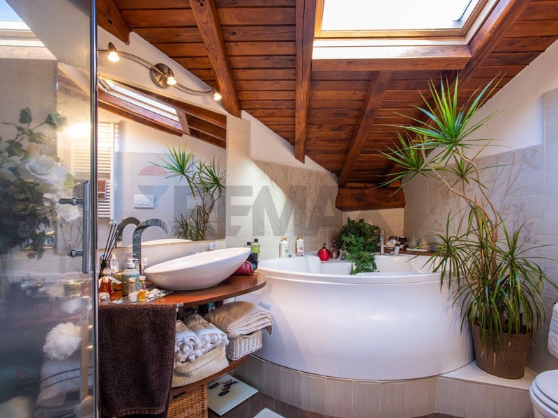 La vasca idromassaggio Jacuzzi e la rubinetteria Treemme conferiscono un tocco di modernità e comfort assoluto.