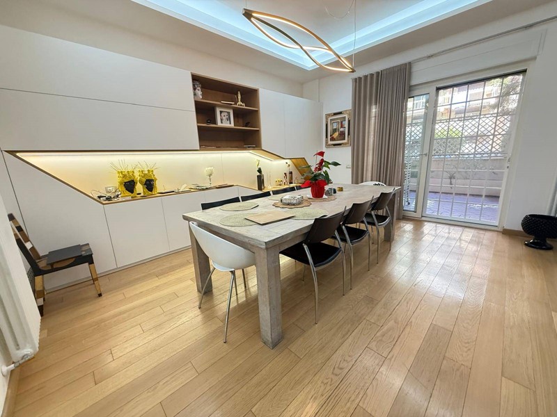 Lingresso introduce a un ampio salone di rappresentanza, luminoso e accogliente, con accesso diretto a un magnifico terrazzo di circa 60 mq, ideale per momenti di relax o per ricevere ospiti in un contesto esclusivo.
