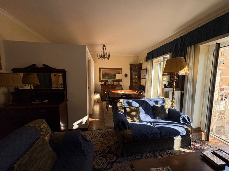 Limmobile era originariamente un trilocale composto da due camere da letto, soggiorno e servizi. Attualmente si accede direttamente in un ampio salone ben illuminato da due porte-finestra che aprono sul balconcino esposto a SUD pieno.