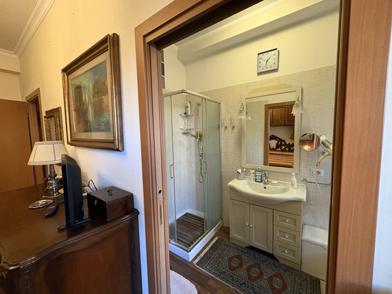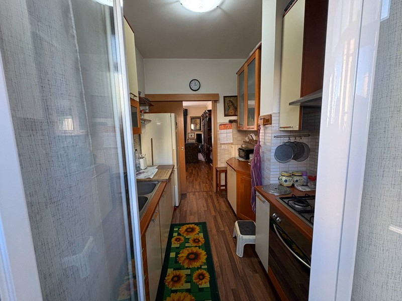 La cucina ben dimensionata permette soluzioni funzionali di arredamento e beneficia a sua volta di uno sfogo esterno con un piccolo terrazzino mentre il bagno ospiti resta agibile senza limitare la privacy della zona notte. La camera da letto dispone di un proprio servizio privato e la silenziosità è garantita oltre che da infissi in alluminio con doppi vetri anche dallaffaccio interno.