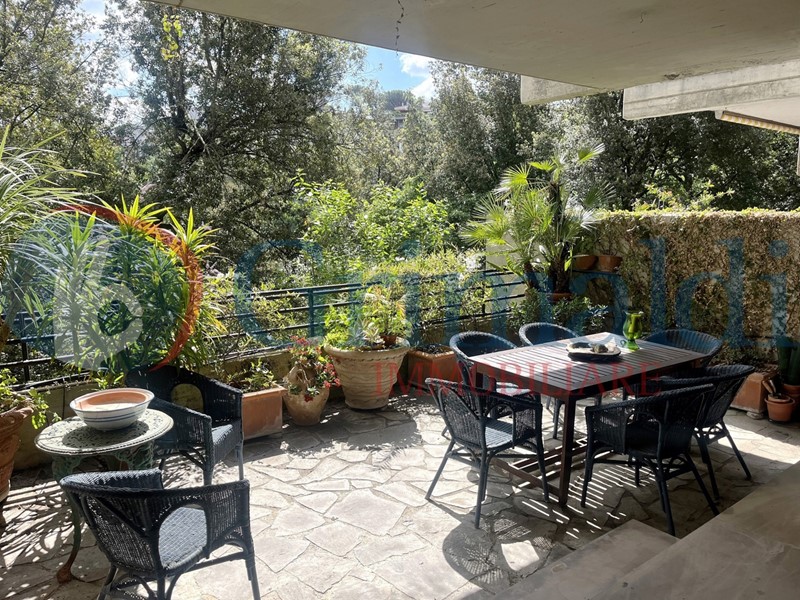 via Calalzo -Parte del Consorzio Cortina D'Ampezzo- In un contesto tranquillo e residenziale, adiacente alla Riserva naturale dell'Insugherata, proponiamo in vendita un elegante appartamento di circa 192 mq commerciali e circa 30 mq di terrazzi, posto al primo piano di una palazzina di totali piani cinque, all'interno di un curato comprensorio con aree verdi, servizio di portineria per l'intera giornata, videosorveglianza e doppio ascensore. L'immobile gode di una tripla esposizione ed ha un affaccio più alto in quanto il comprensorio si sviluppa in senso verticale donando anche ai piani più bassi un importante senso di altezza e ariosità. Si presenta in buone condizioni interne ed è così composto: doppio ingresso, ampio soggiorno di rappresentanza con camino ed accesso al primo terrazzo abitabile, sala da pranzo che collega il soggiorno con la cucina accessoriata da un ripostiglio ed un balcone ad uso lavanderia, corridoio che collega due bagni alla camera da letto e allo studio con secondo balcone abitabile, veranda con accesso alla cameretta di servizio e bagno privato. Presenta inoltre porta blindata, grate di sicurezza nel balcone di servizio della cucina, serrande elettriche, impianto di allarme e di videosorveglianza, impianto di climatizzazione sia nella zona giorno che nelle camere, parquet in tutti gli ambienti ad eccezione della cucina e dei bagni. Completa la proprietà un box auto ed una cantina.