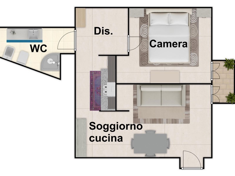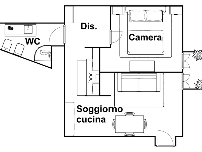 L'abitazione è composta da ambienti ben distribuiti e funzionali, pensati per chi cerca una soluzione pronta all'uso, senza spazi inutili. La zona giorno è organizzata in modo razionale, è studiata per l'uso quotidiano; la camera da letto è separata e garantisce una buona vivibilità, mentre il bagno completa correttamente la distribuzione interna.
