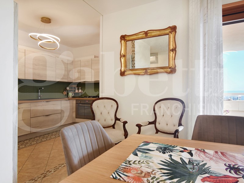 L'immobile è composto da due spaziose camere da letto, due bagni moderni e funzionali, una zona giorno luminosa con cucina a vista e ampie vetrate, che regalano una vista mozzafiato sull'Adriatico.