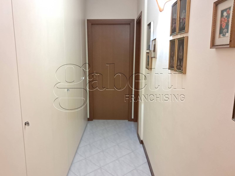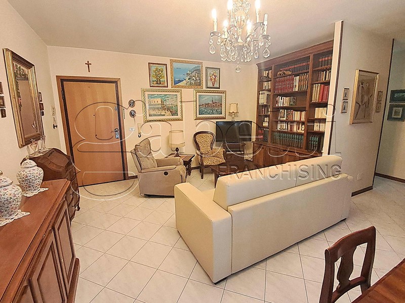 L'abitazione si compone di: ingresso su ampio soggiorno (28 mq) con terrazzino, cucina abitabile, tre camere da letto (due matrimoniali e una doppia), due bagni, balcone, armadio a muro.