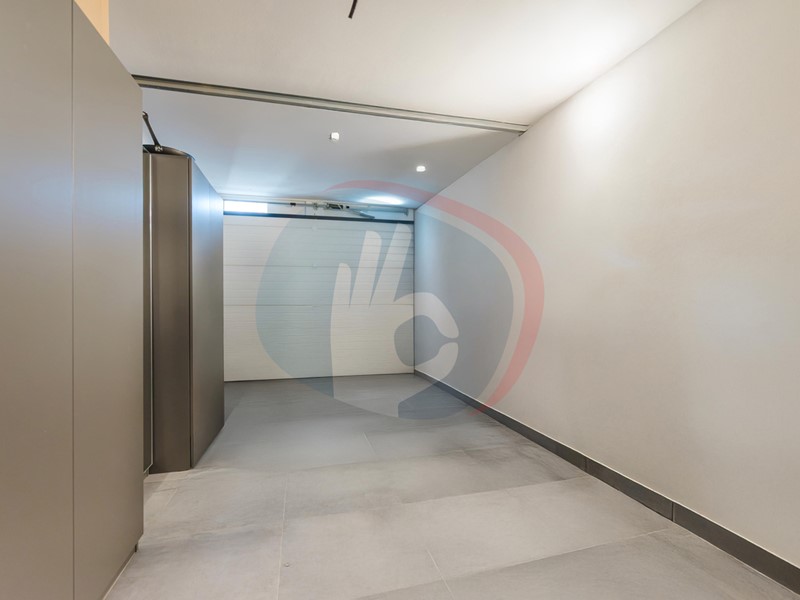 A completamento della soluzione, garage collegato fuori terra di 18 mq con ampio disimpegno/ripostiglio e posto auto scoperto riservato.