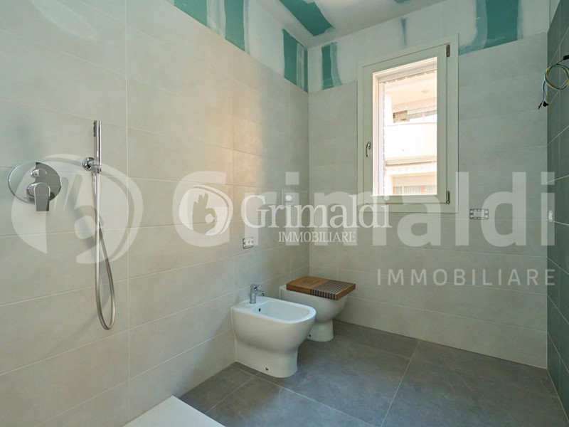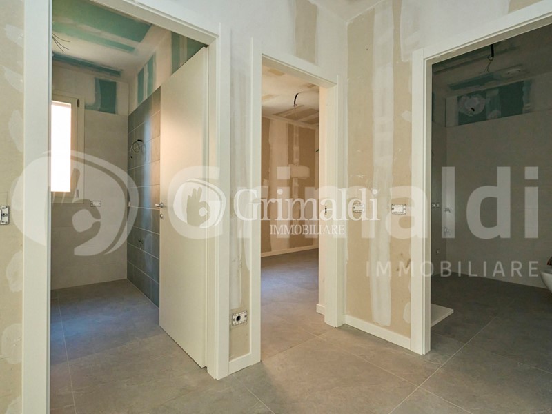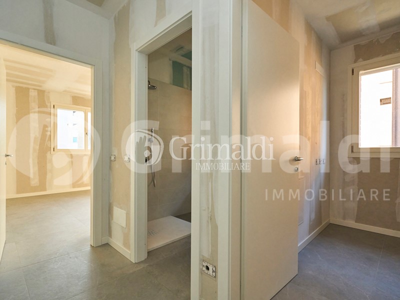 L'appartamento si apre su un'ampia e luminosa zona giorno, caratterizzata da una cucina a vista che si affaccia direttamente su un terrazzo, perfetto per godere di momenti di relax all'aria aperta. Un disimpegno conduce ai due spaziosi bagni e alle due camere da letto, garantendo privacy e comfort.