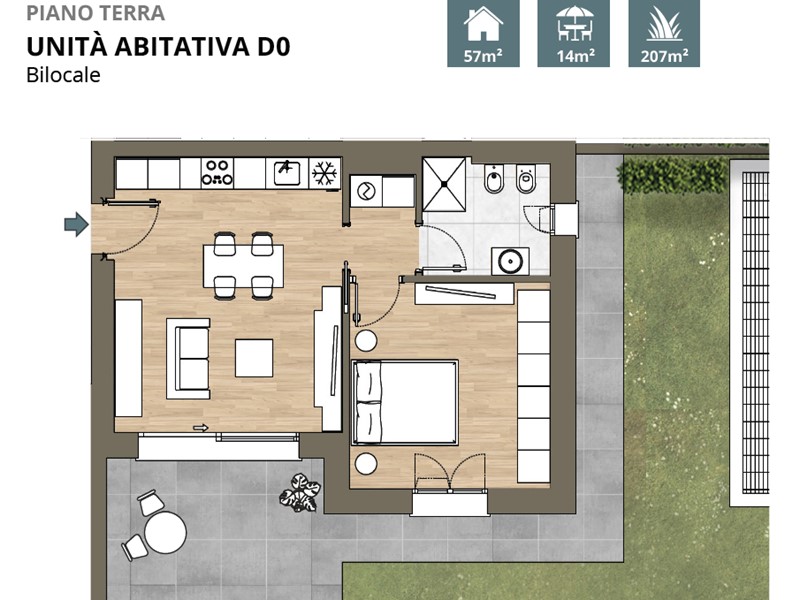 Bilocale di nuova costruzione P.T. con giardino privato di 207 MQ – finiture personalizzabili
